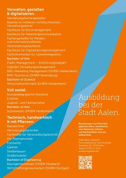 Die Stadt Aalen bildet aus! Informieren Sie sich hier über die angebotenen Ausbildungsberufe.