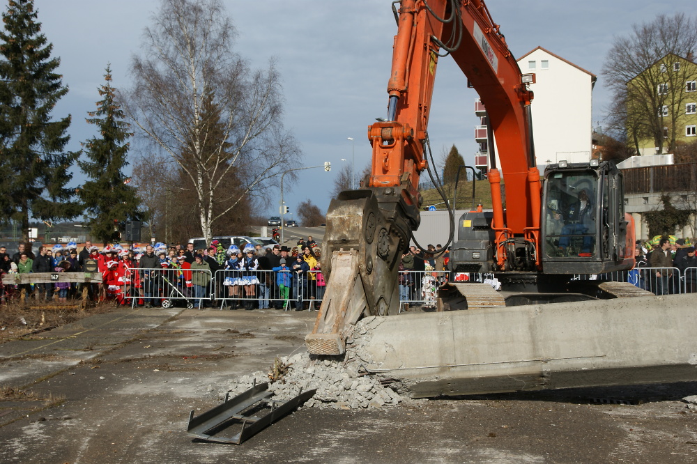 OB Rentschler musste mit der Baggerzange schon einige Male ordentlich zupacken und Eisenarmierungen durchkneifen bis die erste Säule auf dem Stadtoval in einer kleinen Staubwolke fiel. Offizieller Start für die Abräumarbeiten auf dem ehemaligen Baustahlgelände. Es ist ein weiterer Schritt für die Entwicklung eines neuen attraktiven Stadtquartiers.