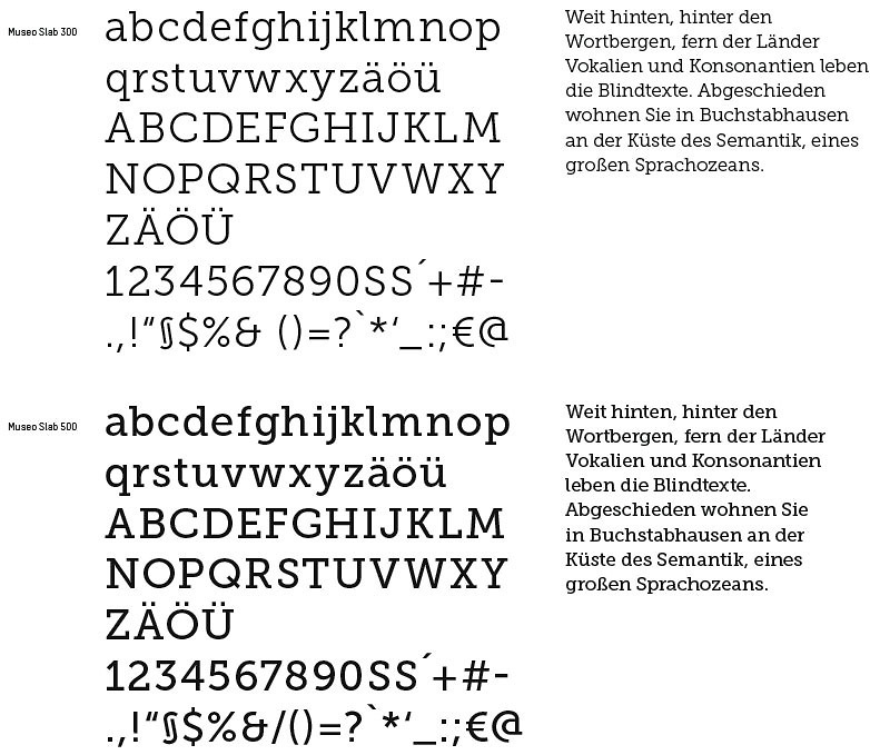 Die Hausschrift Meta wird ersetzt durch Museo Slab. Die Serifenschrift ist weich und sympathisch und mit einheitlicher Strichstärke und breiterem Verlauf besser lesbar.