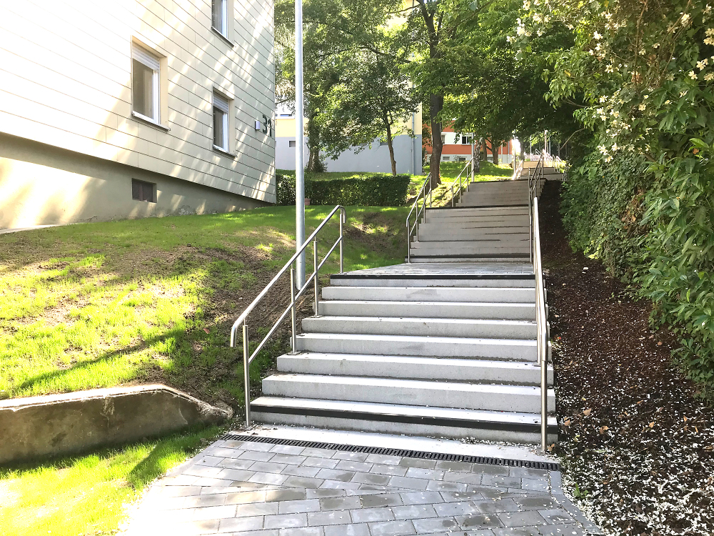 Das Wohnquartier Rötenberg wird mit zahlreichen Freiraummaßnahmen aufgewertet. Die Stadt Aalen mit dem Amt für Umwelt, Grünflächen und umweltfreundliche Mobilität sowie die Wohnungsbau Aalen GmbH arbeiten dabei eng zusammen. Als eine der ersten großen Maßnahmen ist nun die Treppenanlage als Verbindungstück von der Düsseldorfer Straße zum Hangweg und im weiteren Verlauf zur Fahrbachstraße und zum Stadtteil Heide fertiggestellt worden.