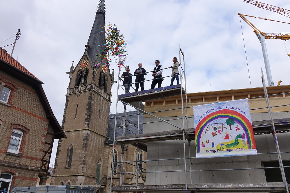 Umrahmt von den Kindern der Kita Regenbogen sowie vom Posaunenchor Aalen wurde der Richtspruch durch die Mitarbeiter der Firma Holzbau Schall gesprochen. Architekt Bernd Liebel ging auf die Nachhaltigkeit des neuen Baus ein. Er vereint die bislang über den Ort verstreuten Einrichtungen der Kirchengemeinde und spart so Energie- und Unterhaltskosten. Eine PV-Anlage auf dem Dach unterstreiche dies. „Der Bau schmiegt sich um die Kirche und lässt viele Ausblicke auf sie zu. Ebenso erhält man durch die vielen großen Fenster Einblicke ins Gemeindezentrum. Pfarrer Uwe Quast freute sich, dass der Bau im Zeit- und Kostenrahmen liegt und sich die Gemeinde nun auf der Zielgerade befinde. Ortsvorsteherin Andrea Hatam freute sich, dass das Gemeindezentrum nun bald Realität sei. „Dazu passt, dass 2022 die Wilhelmstraße bis zur Magdalenenkirche aufgewertet werden soll und in der Karlstraße eine 30er-Zone entsteht“, sagte Hatam.