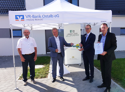 Als Ideengeber stellte Abele Prof. Timo Leukefeld aus Freiberg vor, der gemeinsam mit seinem Vorgänger Hans-Peter Weber das Projekt in Angriff genommen hatte. OB Rentschler lobte die Initiative der VR-Bank für die Energiewende in Aalen, aber auch das hohe Engagement der Bank für viele lokale Initiativen. „Aalen ist bereits stark im Klimaschutz unterwegs. Davon zeugt die heute überbrachte Urkunde: Die Stadt ist seit 25 Jahren Mitglied des Klimabündnisses von Kommunen“, sagte Rentschler.