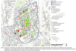 Danach folgt in Kapitel 3 des Konzepts eine Bestandsaufnahme. Im Kapitel „Einzelhandelssituation auf gesamtstädtischer Ebene“ ist die durchgeführte Einzelhandelserhebung enthalten. Die Entwicklung des Angebotes in Aalen wird umfassend dargelegt, dazu gehören z.B. Nachfrage und Bindungsquoten, Umsatzherkunft und Umsatzentwicklung. Sowohl die Händlersicht wie auch die Sicht von Kund*innen bzw. Passant*innen wurden erhoben und betrachtet. Weitere wichtige Themen in diesem Kapitel sind Verkehrsmittelwahl und Parkverhalten, Einkaufsverhalten, Konkurrenzorte und Online-Handel sowie Stärken und Schwächen.