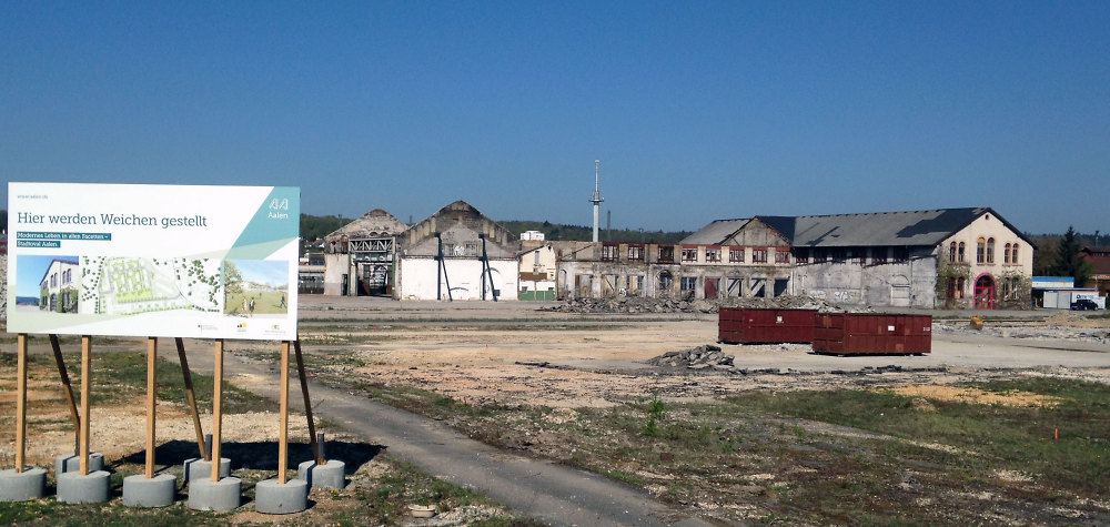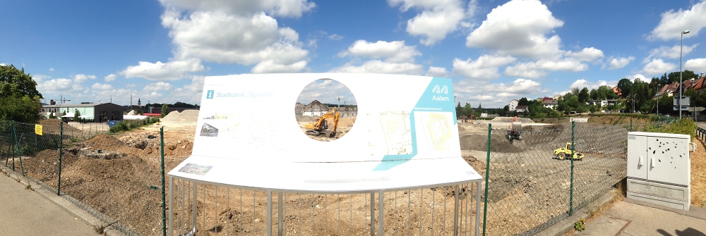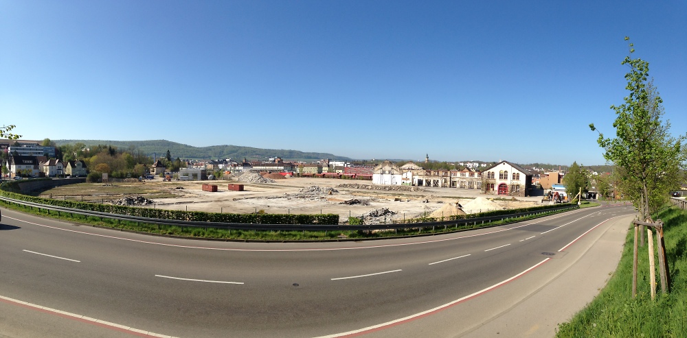 Mit einem kräftigen Baggerstoß gab Oberbürgermeister Thilo Rentschler am 10. April ein tatkräftiges Zeichen für den Beginn der Entsiegelungsarbeiten am Stadtoval.