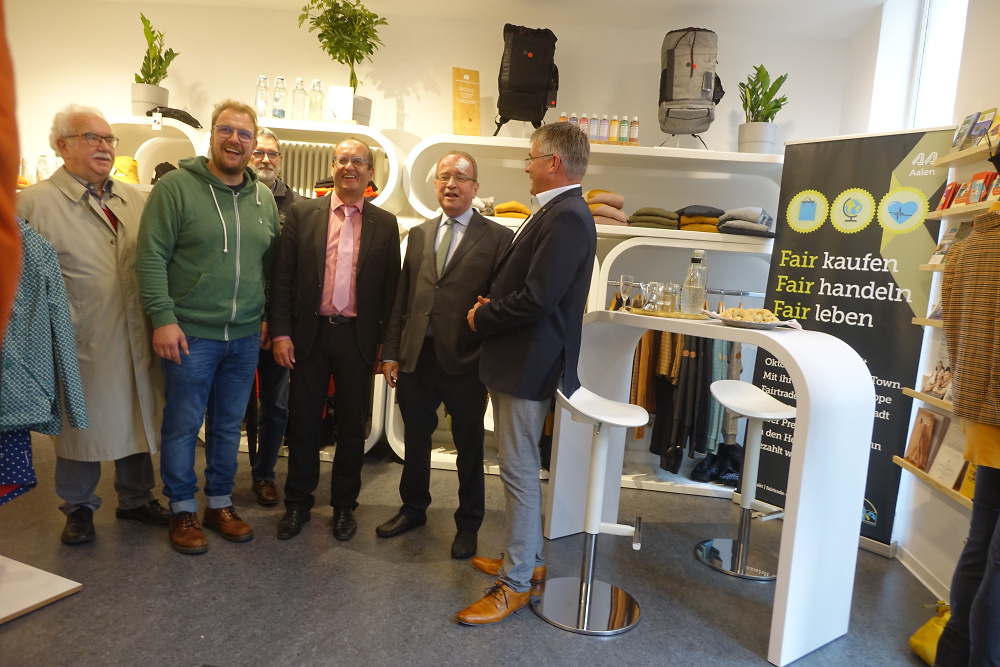 Am Marktplatz 2 bietet die Stadtverwaltung Aalen den Besuchern zudem Informationen rund um die Themen Fairtrade, Nachhaltigkeit und E-Mobilität an. Fair gehandelter Kaffee begleitet dort den Einkauf sowie das Informieren.
