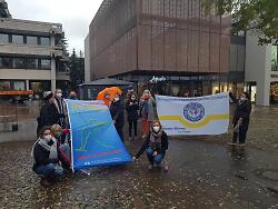 Am 22. November 2021 wurden im Rahmen des Internationalen Tag gegen Gewalt an Frauen und Mädchen vor dem Rathaus traditionell die Flaggen von „Terres des femmes“ gehisst. Von 22. bis 29. November ist nun „Frei leben ohne Gewalt“ in Deutsch, Türkisch und Englisch zu lesen.