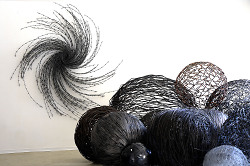 Angelika Summa dagegen hat sich dem Werkstoff Metall verschrieben. Die Widerständigkeit des Materials fasziniert die Bildhauerin. Sie experimentiert mit dem störrischen Material, das sie mal aushöhlt, in Form drückt, wickelt oder zusammenschweißt – Hand-Arbeit eben.