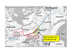 Die Bauarbeiten für die Hirschbachrenaturierung nordwestlich des Hirschhofs haben begonnen.