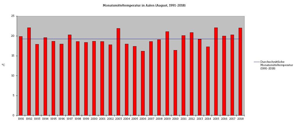 Temperatur im Monat August bis 2018 (Quelle:LUBW) (© )