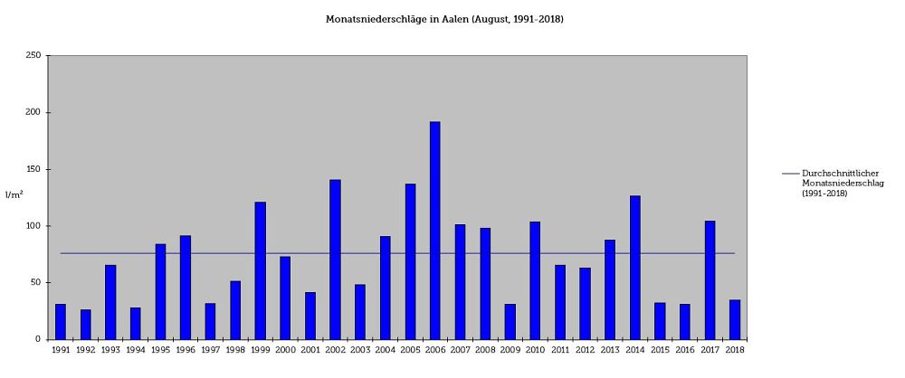 Niederschlag im Monat August bis 2018 (Quelle:LUBW) (© )