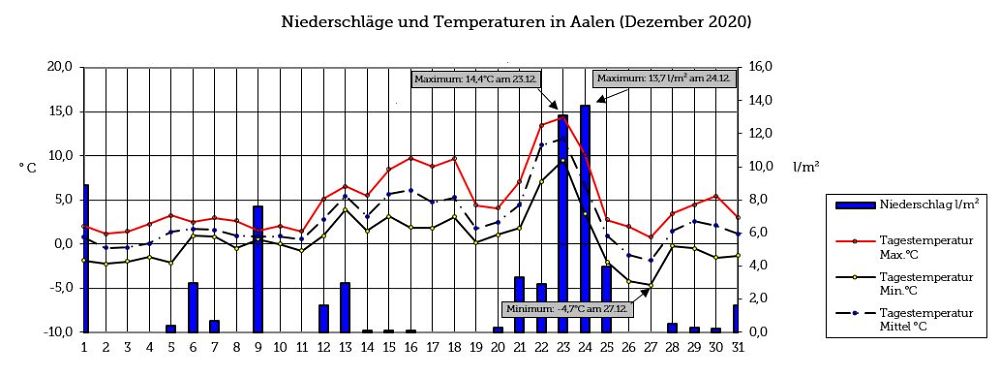 Temperatur und Niederschlag im Dezmber 2020 (Quelle: Stadt Aalen) (© )