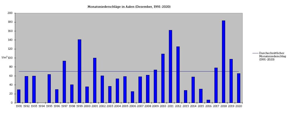 Niederschlag im Monat Dezember bis 2020 (Quelle: Stadt Aalen und LUBW) (© )