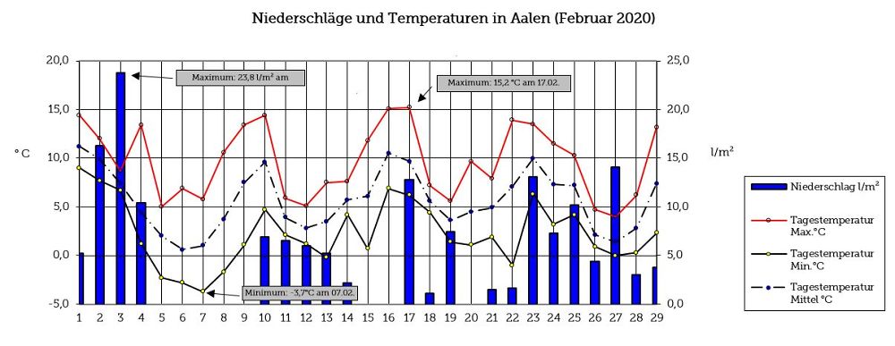 Temperatur und Niederschlag im Februar 2020 (Quelle: Stadt Aalen) (© )