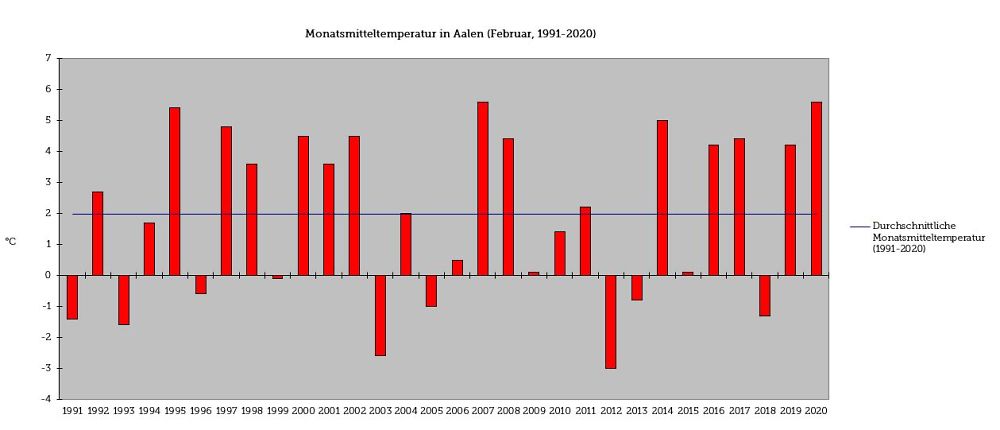 Temperatur im Monat Februar bis 2020 (Quelle: Stadt Aalen und LUBW) (© )