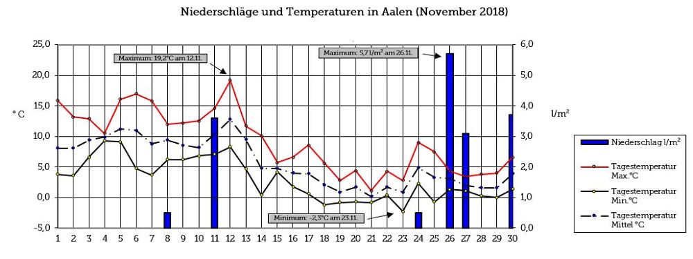 Temperatur im Monat November bis 2018 (Quelle:LUBW) (© )