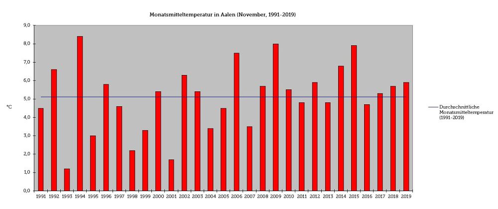 Temperatur im Monat November bis 2019 (Quelle: Stadt Aalen und LUBW) (© )