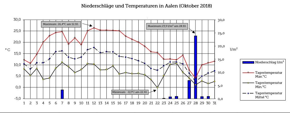 Temperatur und Niederschlag im Oktober 2018 (© Stadt Aalen) (© )