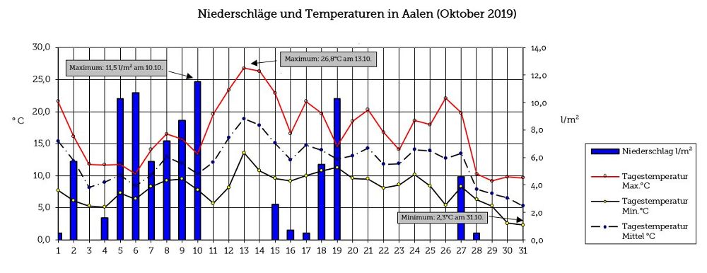Temperatur und Niederschlag im Oktober 2019 (Quelle: Stadt Aalen) (© )