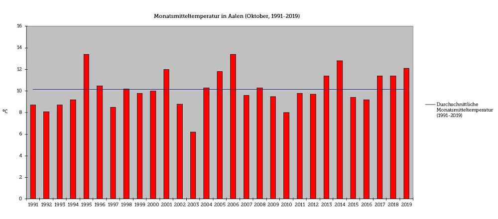 Temperatur im Monat Oktober bis 2019 (Quelle: Stadt Aalen und LUBW) (© )