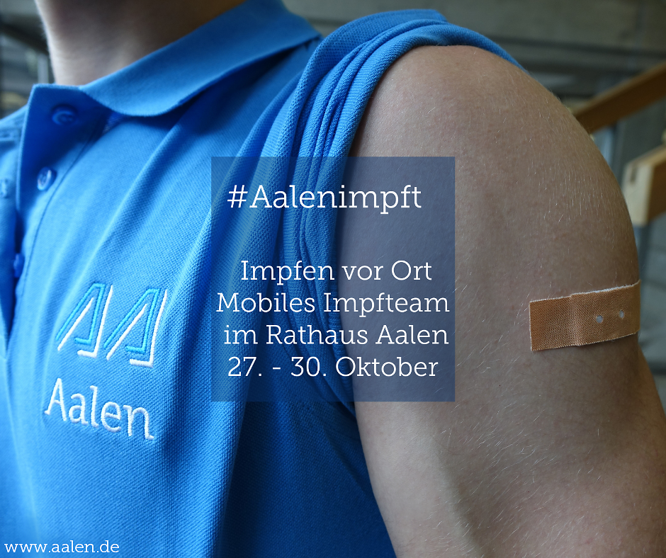 Ab Mittwoch, 27. und bis Samstag, 30. Oktober wird ein Mobiles Impfteam im Aalener Rathaus im Einsatz sein. Täglich von 10 bis 17 Uhr können sich Impfwillige ohne vorherige Terminvereinbarung im Kleinen Sitzungssaal kostenlos gegen das Covid-19-Virus impfen lassen. Es kommen zwei Impfstoffe zum Einsatz. Für eine einmalige Impfung wird das Vakzin Johnson & Johnson angeboten, zudem steht der mRNA-Impfstoff BioNTech zur Verfügung. Für einen vollständigen Impfschutz ist dafür eine zweite Impfung erforderlich, weshalb im notwendigen zeitlichen Abstand das mobile Impfteam für einen weiteren Termin erneut ins Aalener Rathaus kommen wird.