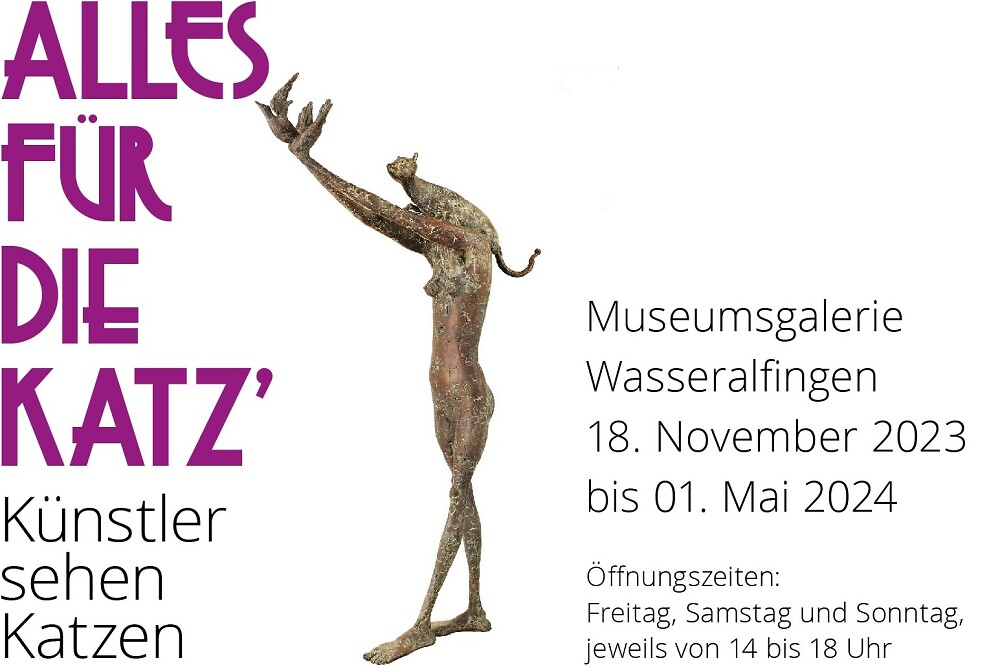 Über 100 Arbeiten aus allen Sparten der Bildenden Kunst – kombiniert mit einigen Texten berühmter Autoren – führen in dieser Ausstellung das besondere Verhältnis von Katze und Mensch vor Augen und widerlegen den geläufigen Spruch, „dass doch alles für die Katz“ ist. Nein, diese geläufige Redewendung bestätigt sogar die Einstellung der Menschen, „alles für die Katz“ zu tun, damit es den liebgewonnenen Tiergefährten gut geht.
