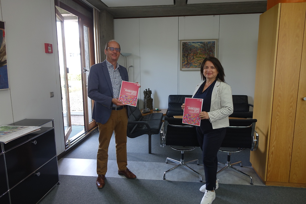 Auf 62 Seiten bietet der frisch erschienene Ausbildungsatlas Entscheidungshilfe in Form von Berufs- und Firmenprofilen und gibt praktische Tipps etwa bei der Vorbereitung von Vorstellungsgesprächen. Der von der Stadtverwaltung in Auftrag gegebene Atlas wurde an allen weiterführenden Schulen und relevanten Institutionen verteilt und ist auch im Rathaus kostenlos erhältlich.