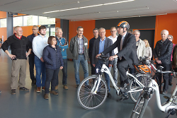 Im Anschluss nutzen OB und Höschle die Gelegenheit selbst eines der Pedelecs auszuprobieren, die die Stadtwerke für die Aktion zur Verfügung gestellt hatten.