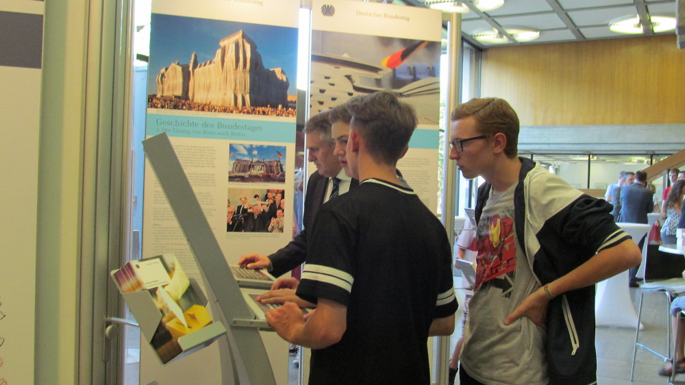 Die Ausstellung wird ergänzt durch kostenloses Infomaterial, wie das Grundgesetz, Hefte zur Wahl, Nachschlagewerke, in denen alle Abgeordneten vorgestellt werden, verschiedene Broschüren sowie kleine Erinnerungsgeschenke.