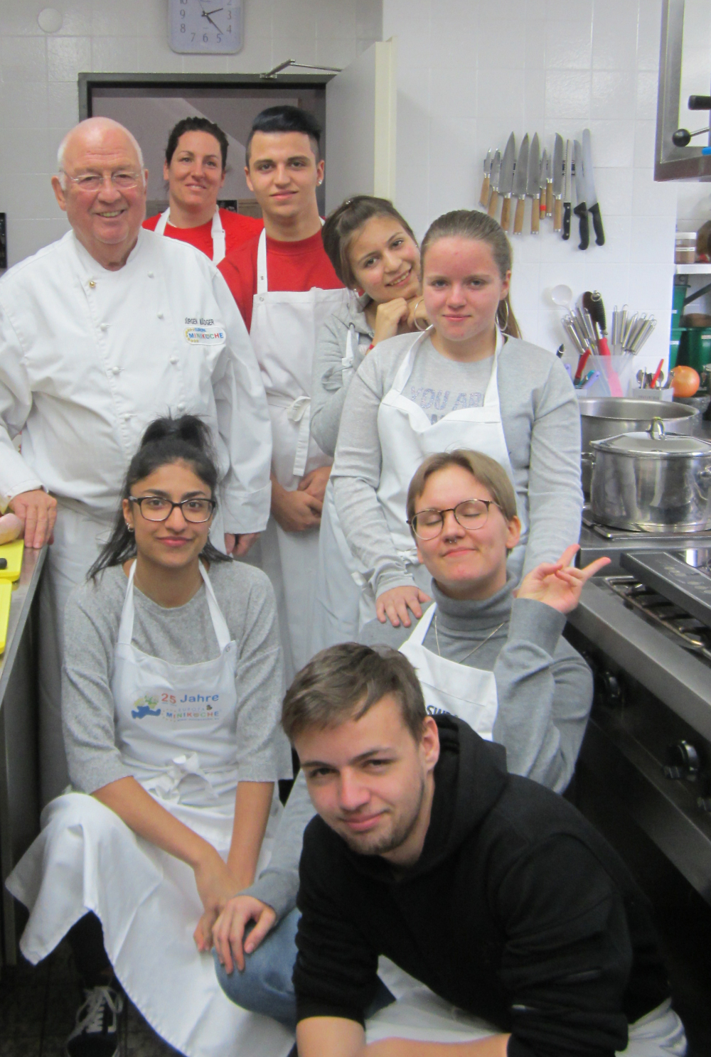 Rein in den Bus und ab nach Bartholomä, zum Profikoch und Erfinder der „Europa Miniköche“, Jürgen Mädger. Dieser Ausflug ist ein besonderes Highlight und zugleich der Abschluss des internationalen Kochprojektes „Über den Tellerrand schauen“ der Jugendlichen des Treffpunkts Rötenberg unter der Leitung von Heidrun Zürger.