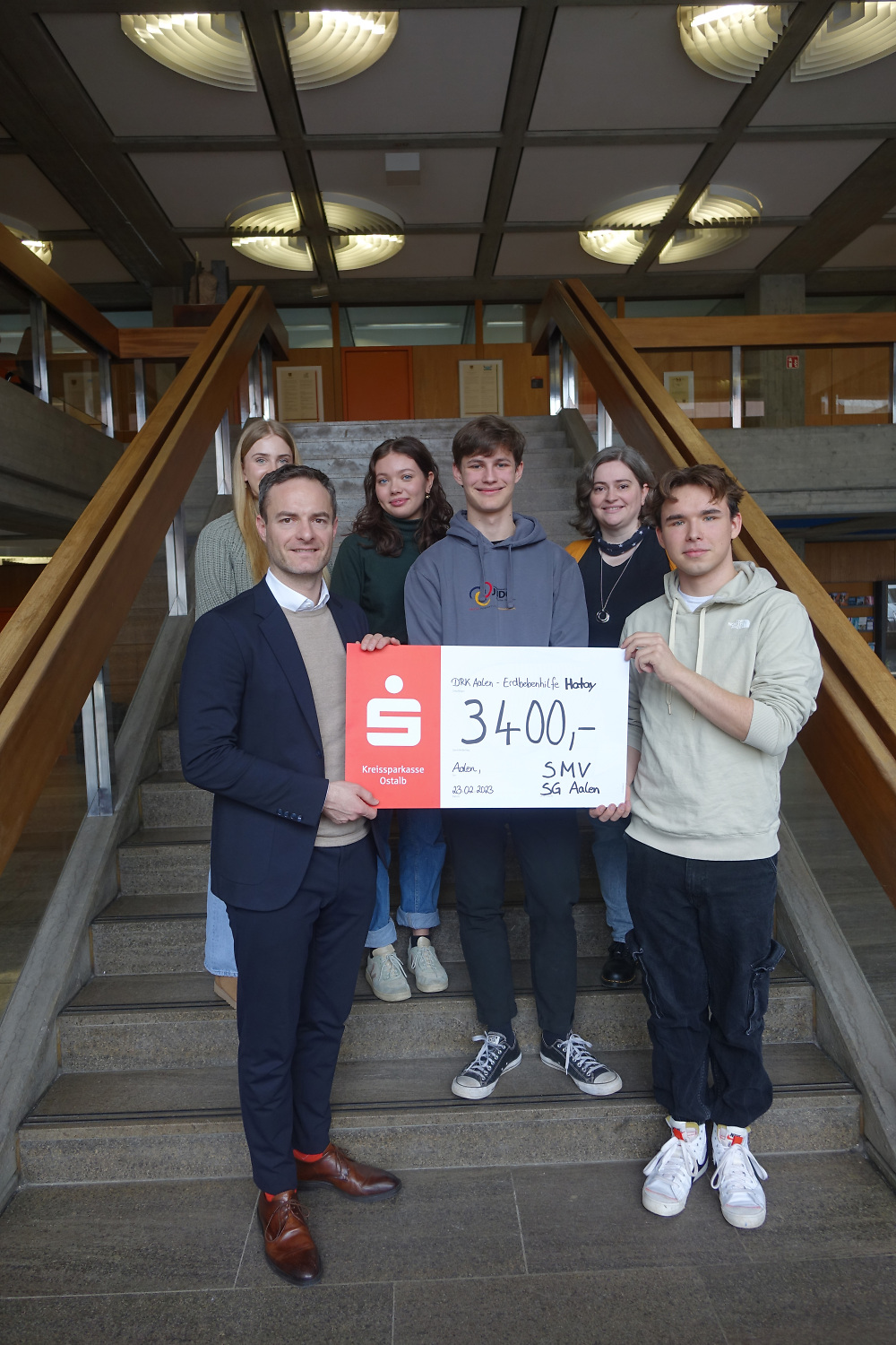 Am vergangenen Donnerstag übergaben Schüler*innen der SMV des Schubart-Gymnasiums eine Spende von 3.400 Euro für die Erdbebenhilfe für Hatay an Oberbürgermeister Frederick Brütting.