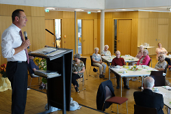 Bernhard Richter erinnerte an die Zusammenlegung der Kreise aus der Martin- und Markuskirche sowie und in der Triumphstadt ins neue Gemeindehaus. „So ist es möglich, jeden Dienstag einen offenen Nachmittag mit verschiedenen Themenschwerpunkten jeweils ab 14 Uhr anzubieten“, sagte er. Dekan Ralf Drescher lobte die Gemeinde ebenfalls: „Hier hat eine schöne Gemeinschaft zusammengefunden.“ OB Rentschler reflektierte die 1970er Jahre der Gründung des Seniorenkreises. „Ich komme gerne wieder und informiere Sie zu Themen des Stadtumbaus“, sagte er.