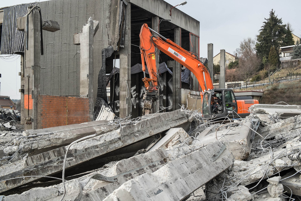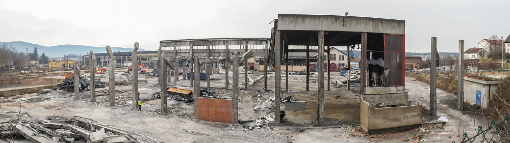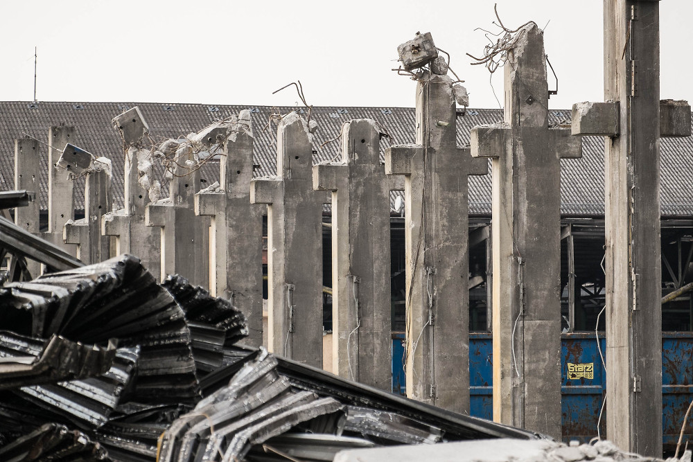 Bilder vom Abbruch der oberirdischen Gebäude und Anlagen.
