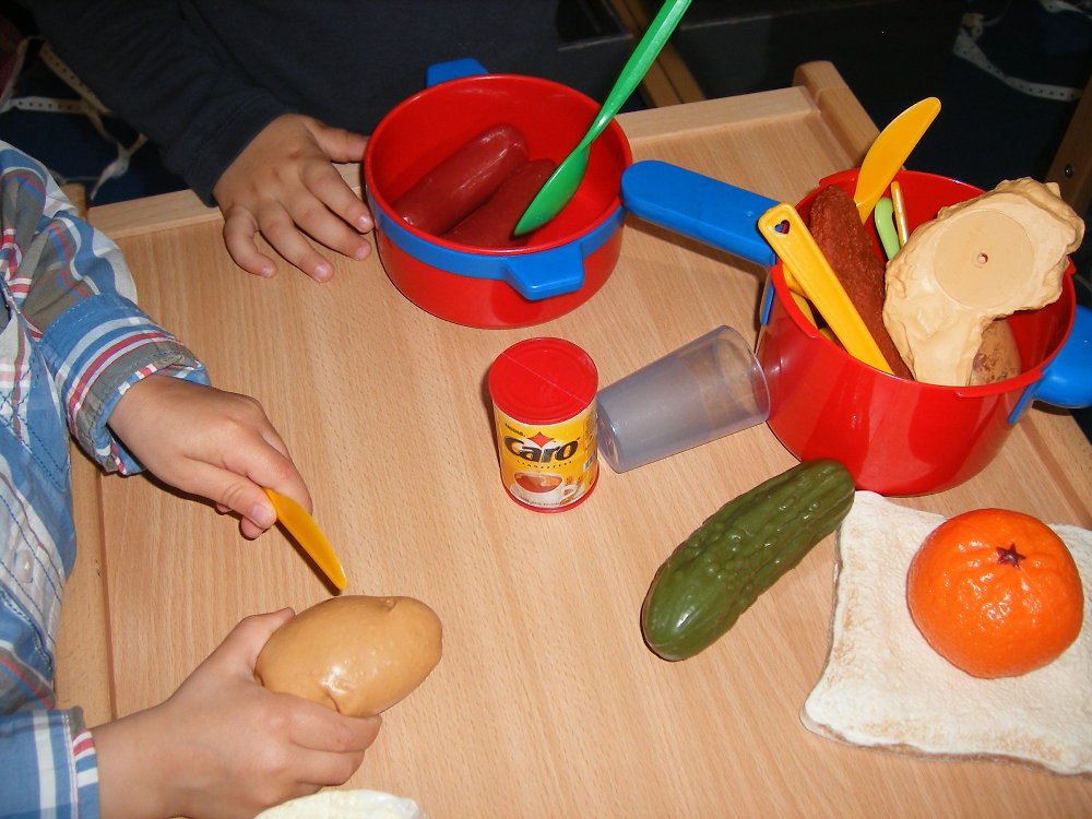 Sie lernen sich zu pflegen oder erfahren etwas über Lebensmittel. Aber auch Erkrankungen und der Besuch beim Arzt wird hier nachgespielt oder durch Bücher und Geschichten aufgearbeitet.