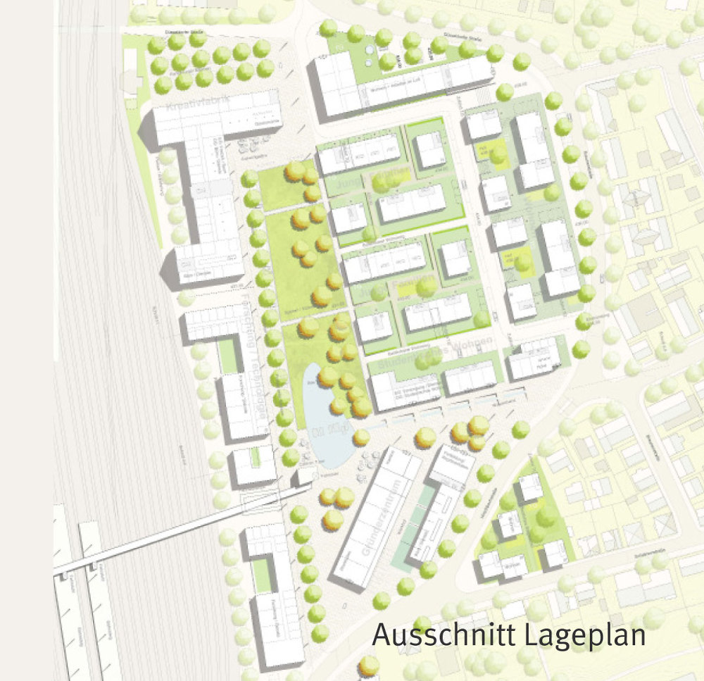 - dem Wohnquartier, das sich an der ehemaligen Eisenbahnersiedlung im Osten angliedert und ausrichtet,