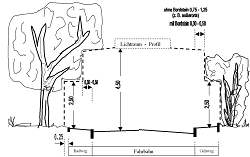 Die Stadtverwaltung weist wieder einmal darauf hin, dass nach den bundes- und landesgesetzlichen Bestimmungen die Eigentümer und Besitzer von Bäumen, Sträuchern und Hecken an öffentlichen Straßen und Wegen verpflichtet sind, diese Anpflanzungen so zurückzuschneiden, dass die Sicherheit des Straßenverkehrs nicht beeinträchtigt ist. Um Beeinträchtigungen zu vermeiden, muss bei öffentlichen Verkehrsflächen der Luftraum über den Fahrbahnen mindestens bis 4,50 Meter, über Geh- und Radwegen bis mindestens 2,50 Meter Höhe von überhängenden Ästen und Zweigen freigehalten werden. Der Bewuchs ist entlang der Gehwege bis zur Gehweghinterkante zurückzuschneiden. Bei Fahrbahnen ist ein seitlicher Sicherheitsraum von mindestens 0,75 Meter einzuhalten. Sofern ein Bordstein vorhanden ist, kann der Sicherheitsabstand vom Fahrbahnrand auf 0,50 Meter reduziert werden. Bei Radwegen beträgt der seitliche Sicherheitsabstand 0,25 Meter. Gleichzeitig sind Bäume auf ihren Zustand, insbesondere auf Standsicherheit, zu untersuchen und dürres Geäst beziehungsweise dürre Bäume ganz zu entfernen.